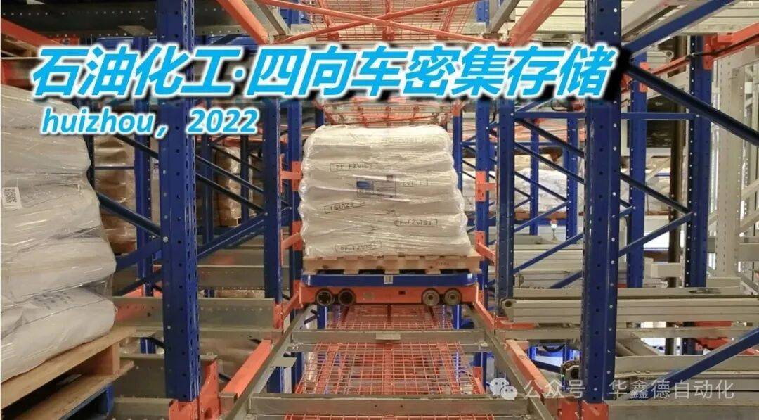 图/石油化工·四向车群集存储体系,库区重要存放有袋装、桶装的石化原料,按照甲方诉求,采用四向车穿梭车体系,竣工库区容量最大化。